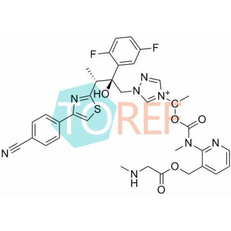 中文名称:1-{(2S,3R)-3-[4-(4-氰苯基)-1,3-噻唑-2-基]-2-(2,5-二氟苯基)-2-羟基丁基}-4-[(1RS)-1-({甲基[3-({[(甲氨基) 乙酰基]氧基}甲基)吡啶-2- 基]氨基甲酰}氧基)乙基]-1H-1,2,4-三唑-4-鎓
